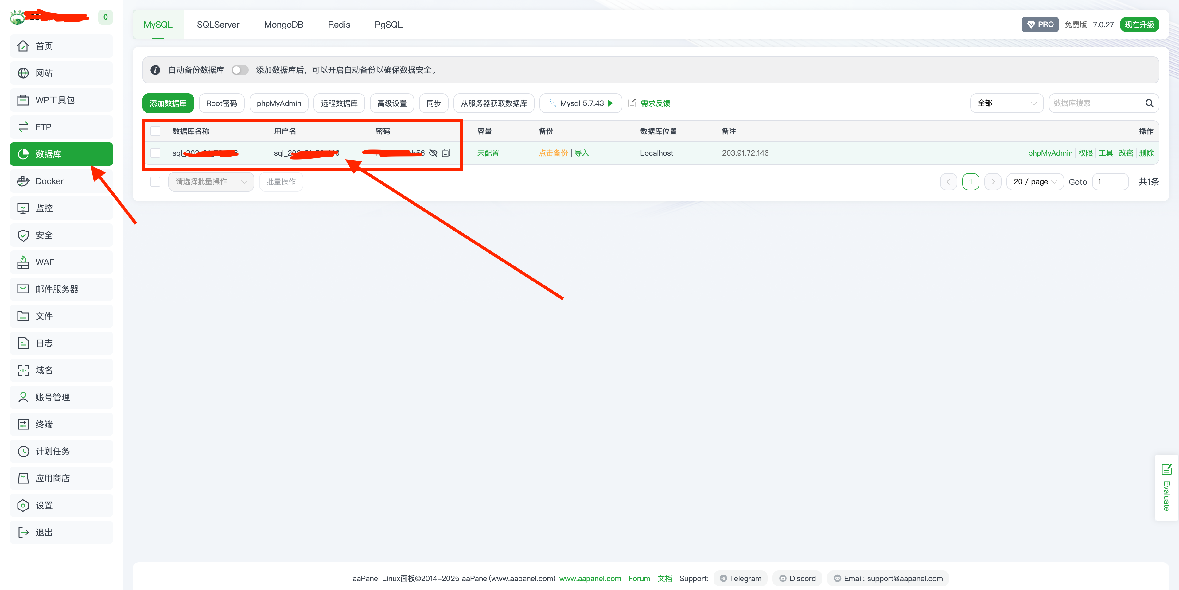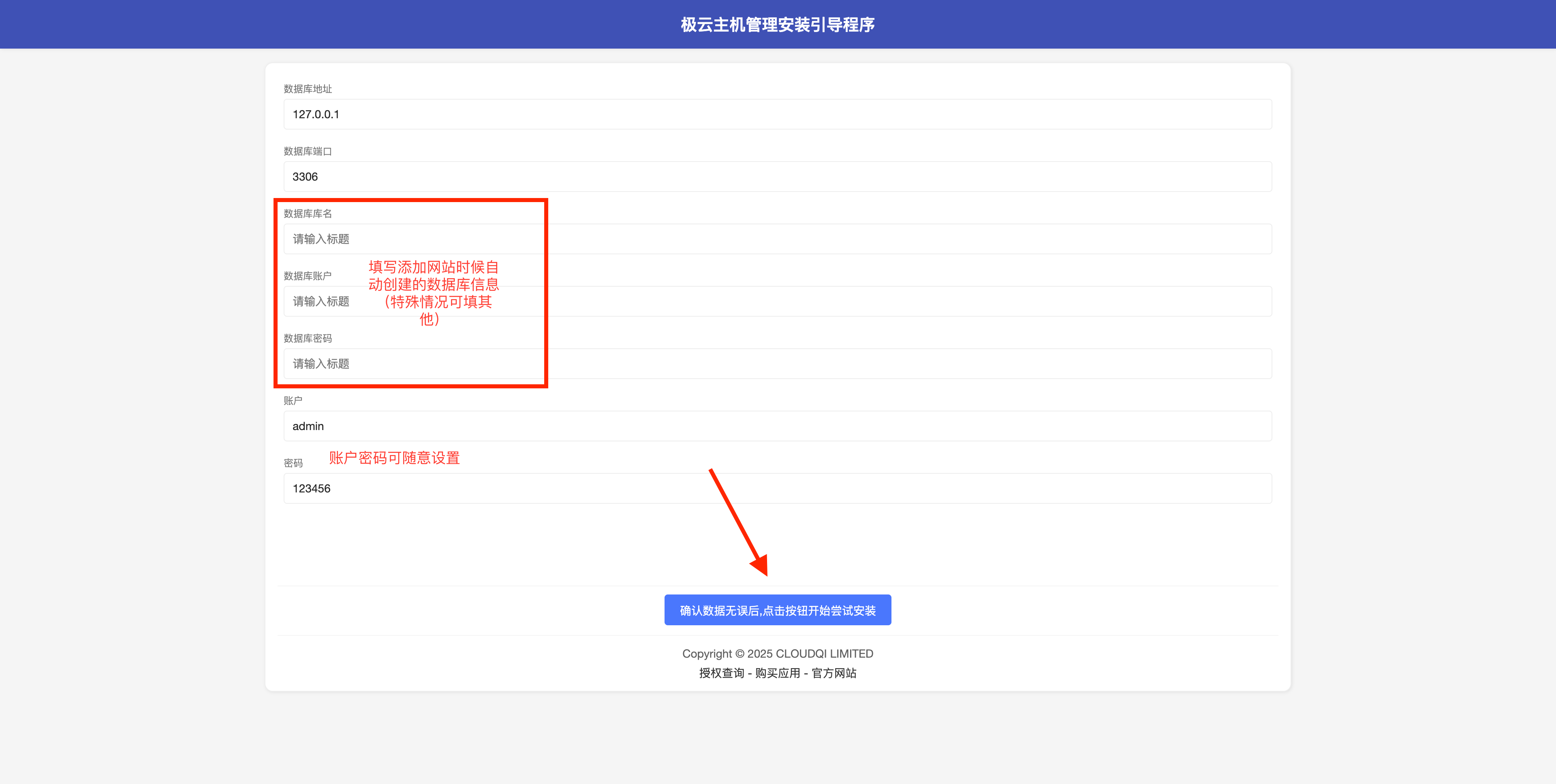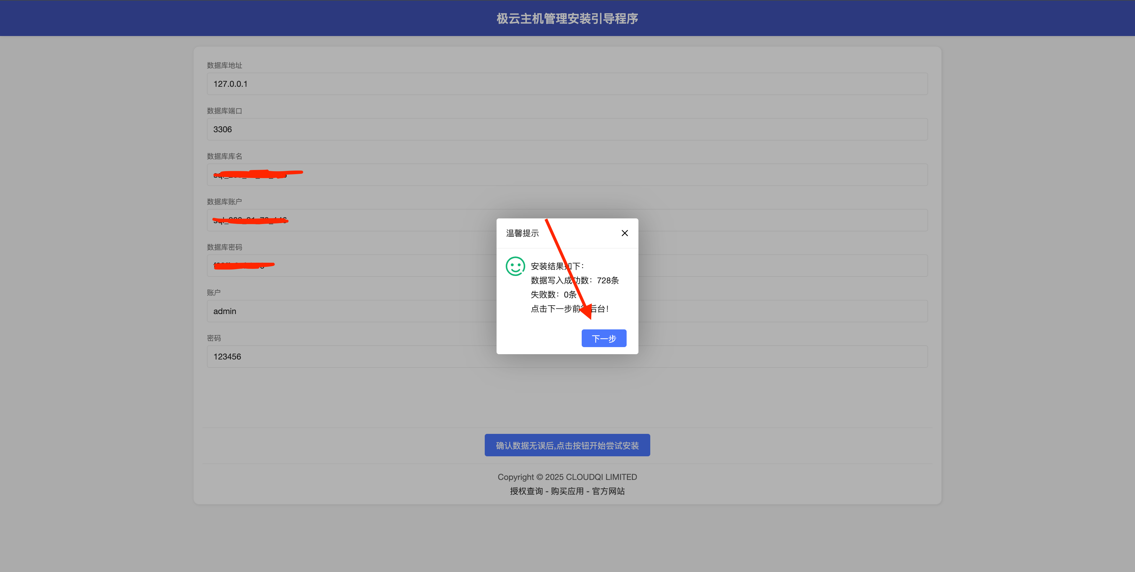 配置数据库信息 填写自己的管理员信息