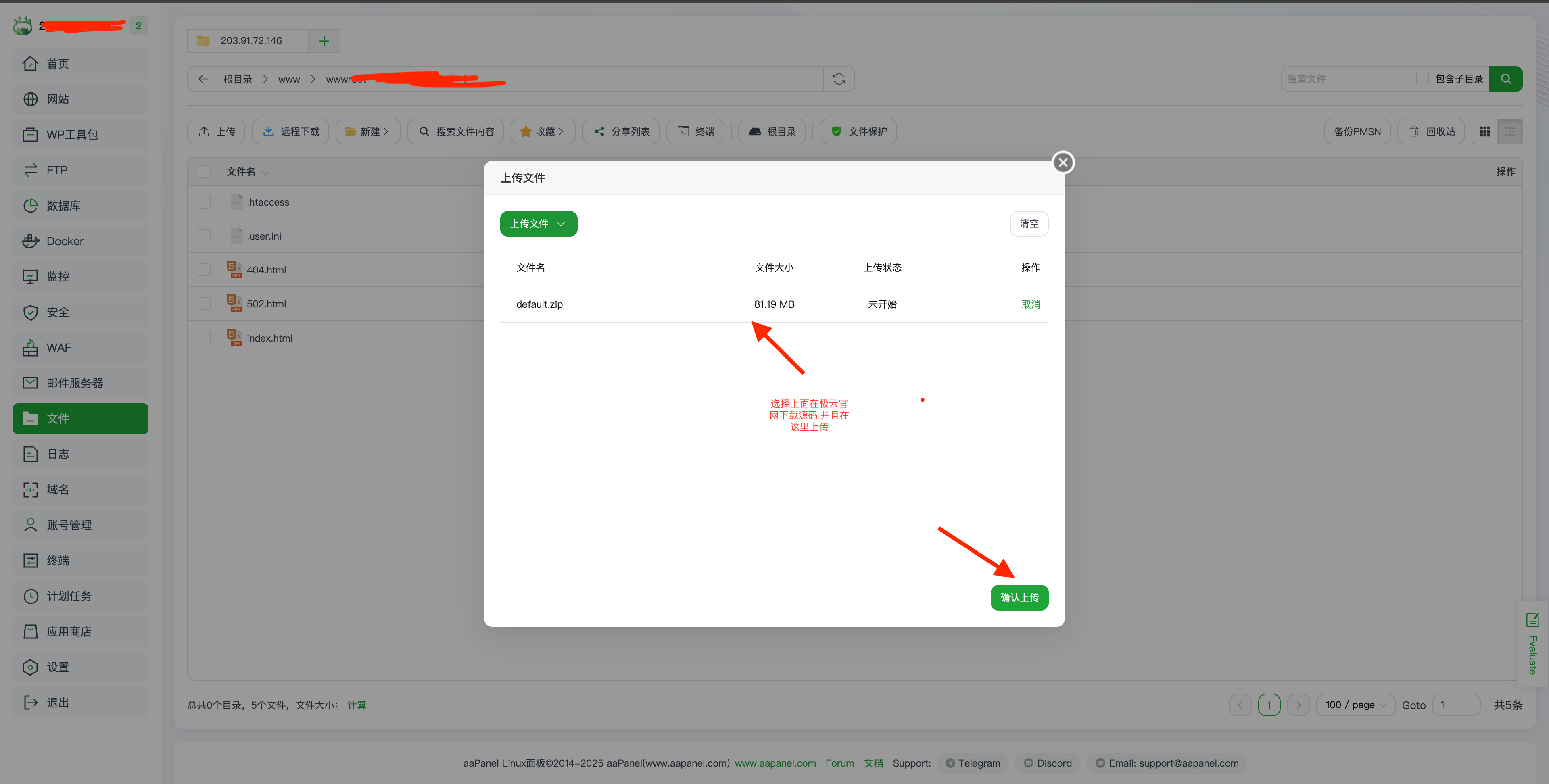 第六步:上传源码 并 配置站点