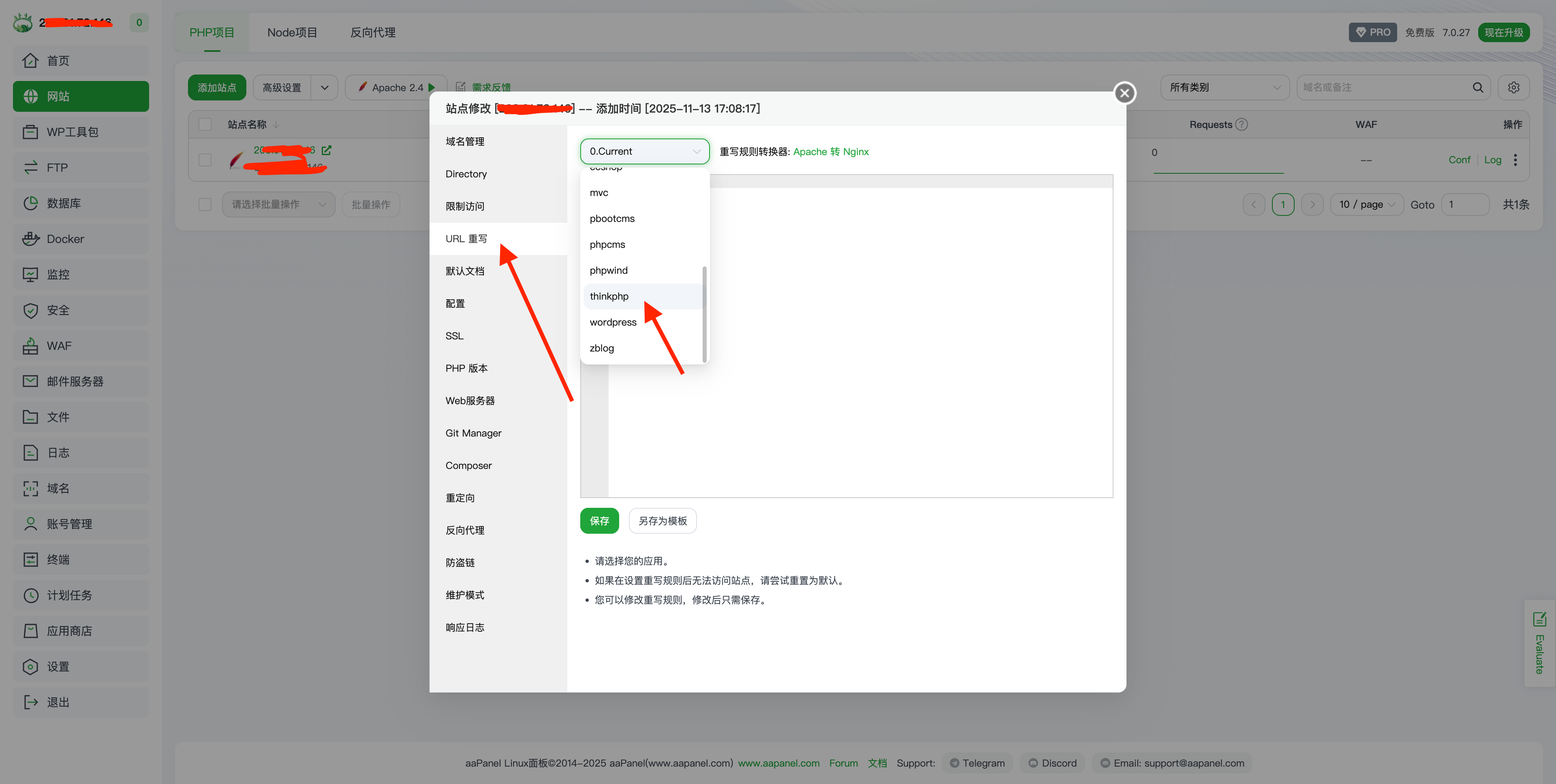 伪静态选择Thinkphp 运行目录选择public