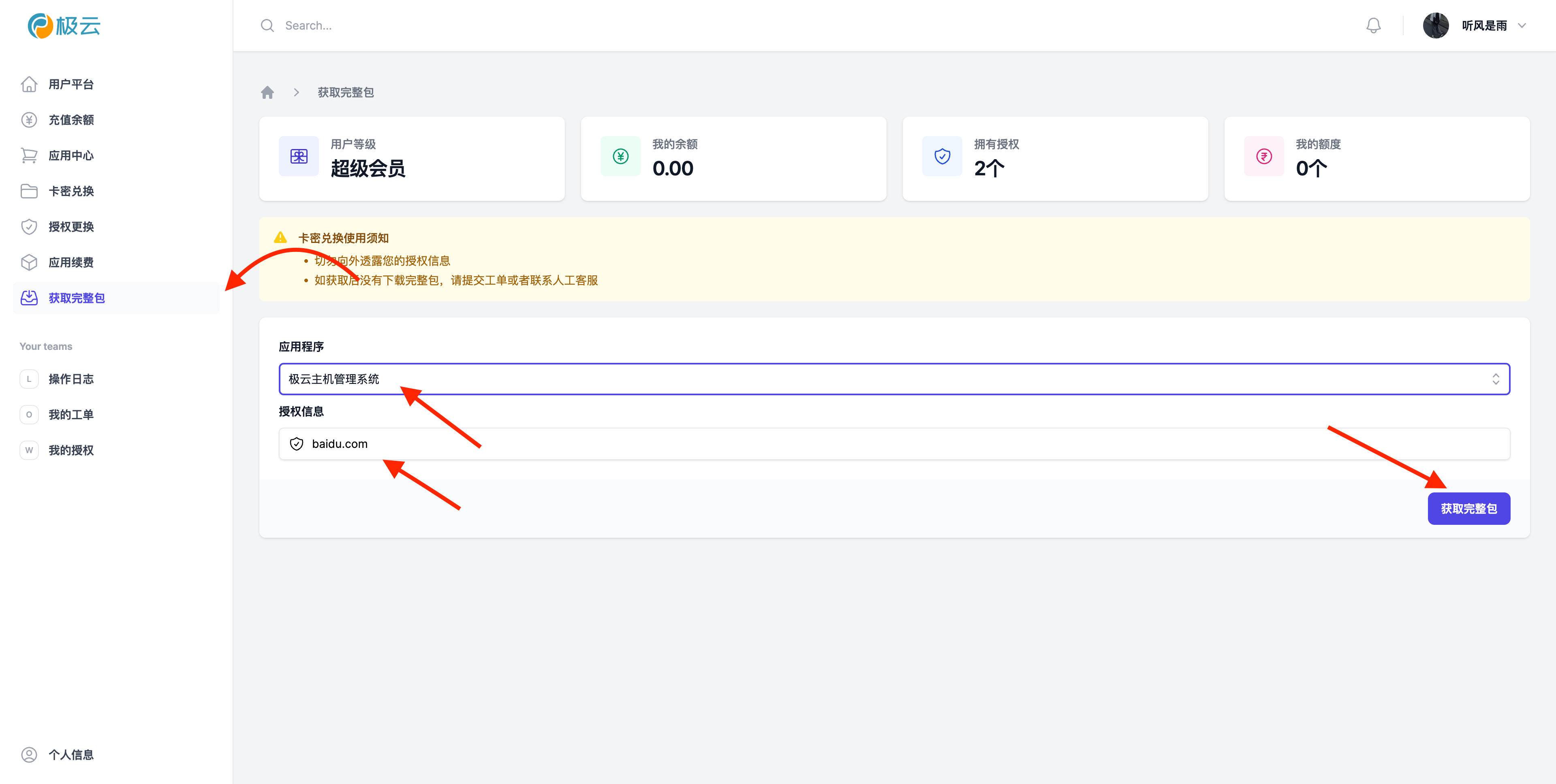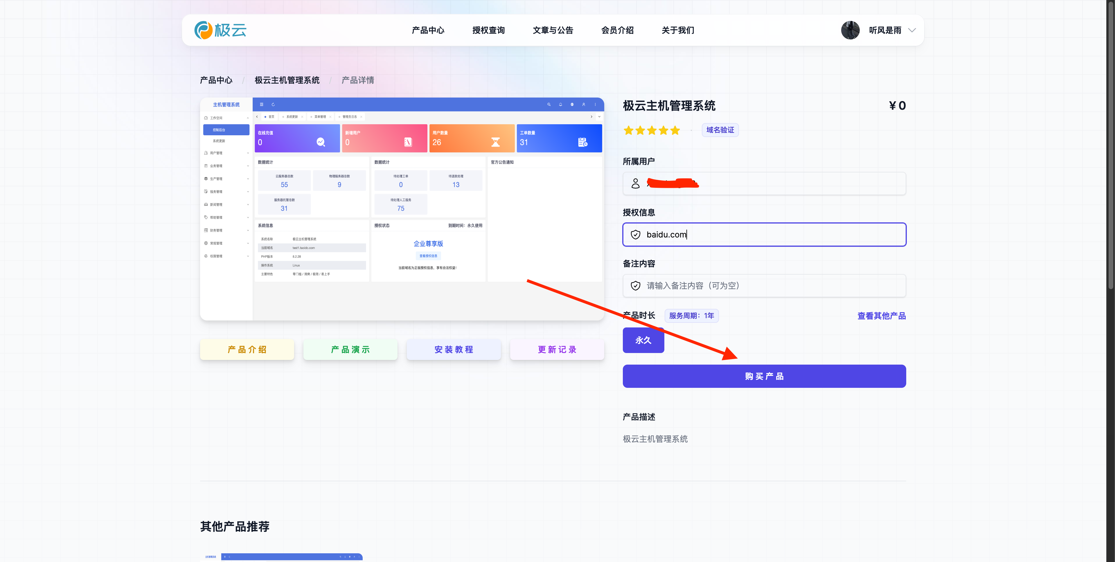 第一步:我们去极云官网购买授权