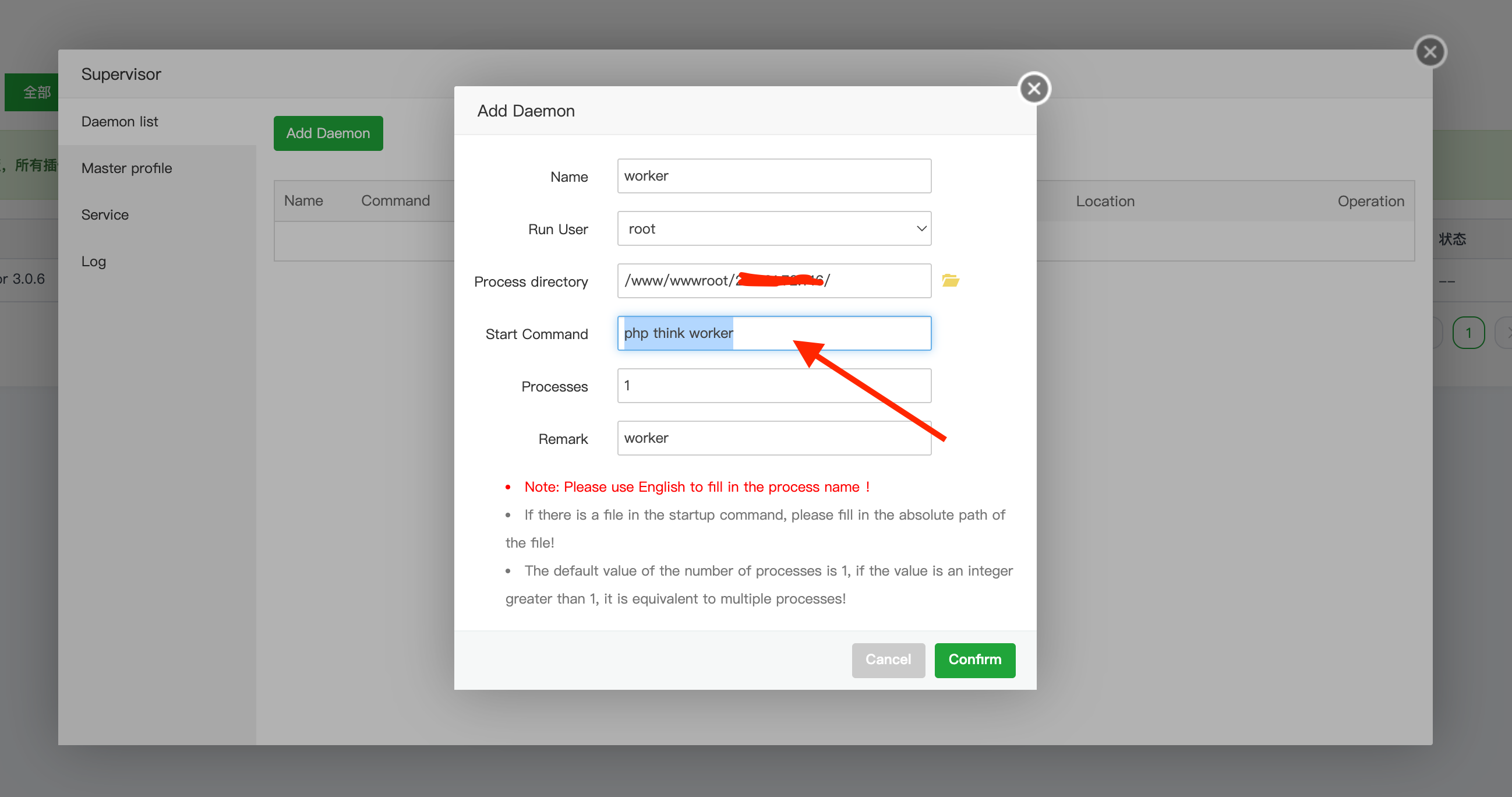 打开Supervisor配置选择对应的根目录