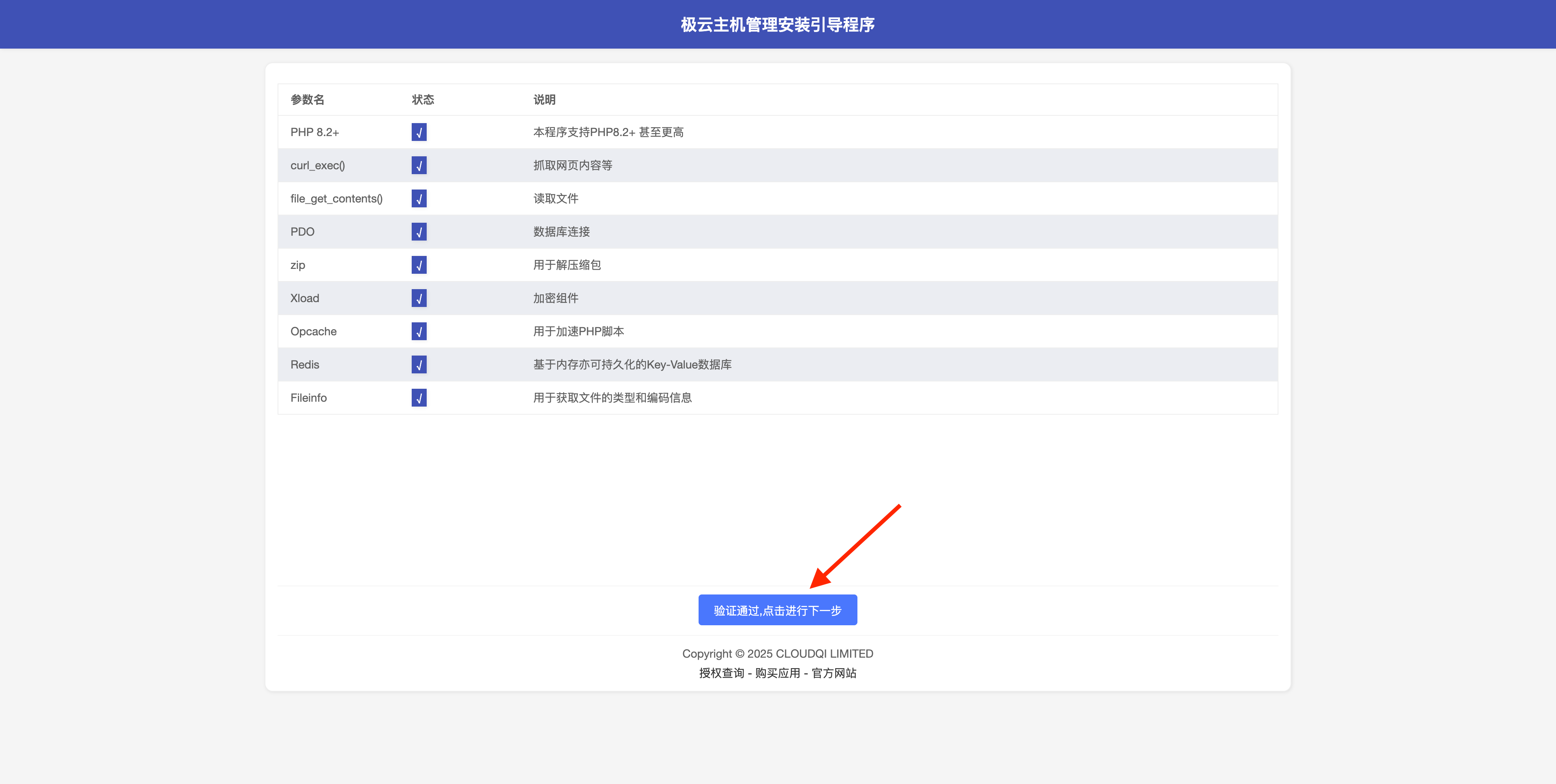 点击下一步 (如扩展已经安装 还显示未安装 请重启PHP)